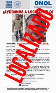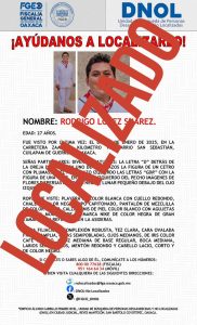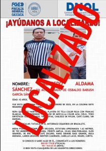En tanto que, el tercer caso se trata de una persona del sexo masculino identificado como R.L.S., quien fue visto por última vez el 16 de enero de 2025, al salir de su domicilio ubicado en el barrio San Sebastián, en el municipio de Cuilapam de Guerrero, a partir de lo cual se realizaron los trabajos que permitieron su localización.