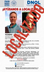 A partir de la denuncia interpuesta ante la FGEO, se iniciaron las investigaciones al respecto a través de la Unidad de Búsqueda de Personas Desaparecidas y No Localizadas (DNOL), perteneciente a la Vicefiscalía General de Atención a Víctimas y la Sociedad, lo cual permitió trazar las líneas de investigación que llevaron a su localización el 17 de enero de 2025, en inmediaciones de Lomas del Crestón, jurisdicción del municipio de Oaxaca de Juárez.