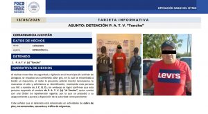 También destacó la detención de una persona del sexo masculino identificado como P.A.T.V. alias “Tonche”, quien está considerado como objetivo prioritario por ser un generador de violencia en la región y estar vinculado a diversas actividades delictivas como cobro de piso, narcomenudeo y secuestro.