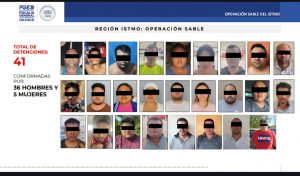 Asimismo, el Fiscal de Oaxaca, Bernardo Rodríguez Alamilla explicó que mediante las intervenciones conjuntas con dependencias federales de seguridad se ha logrado la detención de 36 hombres y cinco mujeres, quienes son considerados como objetivos prioritarios por su probable participación en actividades delictivas entre las que se encuentran: narcomenudeo, tráfico de personas migrantes, extorsión y ejecuciones en la región del Istmo de Tehuantepec.