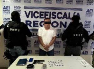 La detención de C.R.R., deriva de diversas denuncias ciudadanas relacionadas con el cobro de piso, extorsión, posesión de armas de fuego y venta de drogas, en hechos ocurridos en el municipio de San Juan Bautista Tuxtepec.