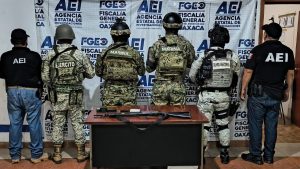 El primer operativo se realizó en un domicilio ubicado en la colonia Cuauhtémoc, en el municipio de Matías Romero Avendaño, en donde elementos de la Agencia Estatal de Investigaciones adscritos a la Vicefiscalía Regional del Istmo, lograron el aseguramiento de diversas armas de fuego, entre ellas un rifle, así como cartuchos metálicos.