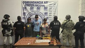 Mientras que, el tercer operativo se efectuó en un domicilio ubicado en el municipio de Santiago Pinotepa Nacional, sitio en el que aseguraron decenas de bolsas que contenían una sustancia granulada, además de la detención de dos personas del sexo masculino identificados como A.J.P. y J.C.S., quienes fueron puestos a disposición de la autoridad correspondiente para determinar su situación jurídica.