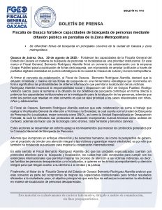 - Se difundirán fichas de búsqueda en principales cruceros de la ciudad de Oaxaca y zona metropolitana
