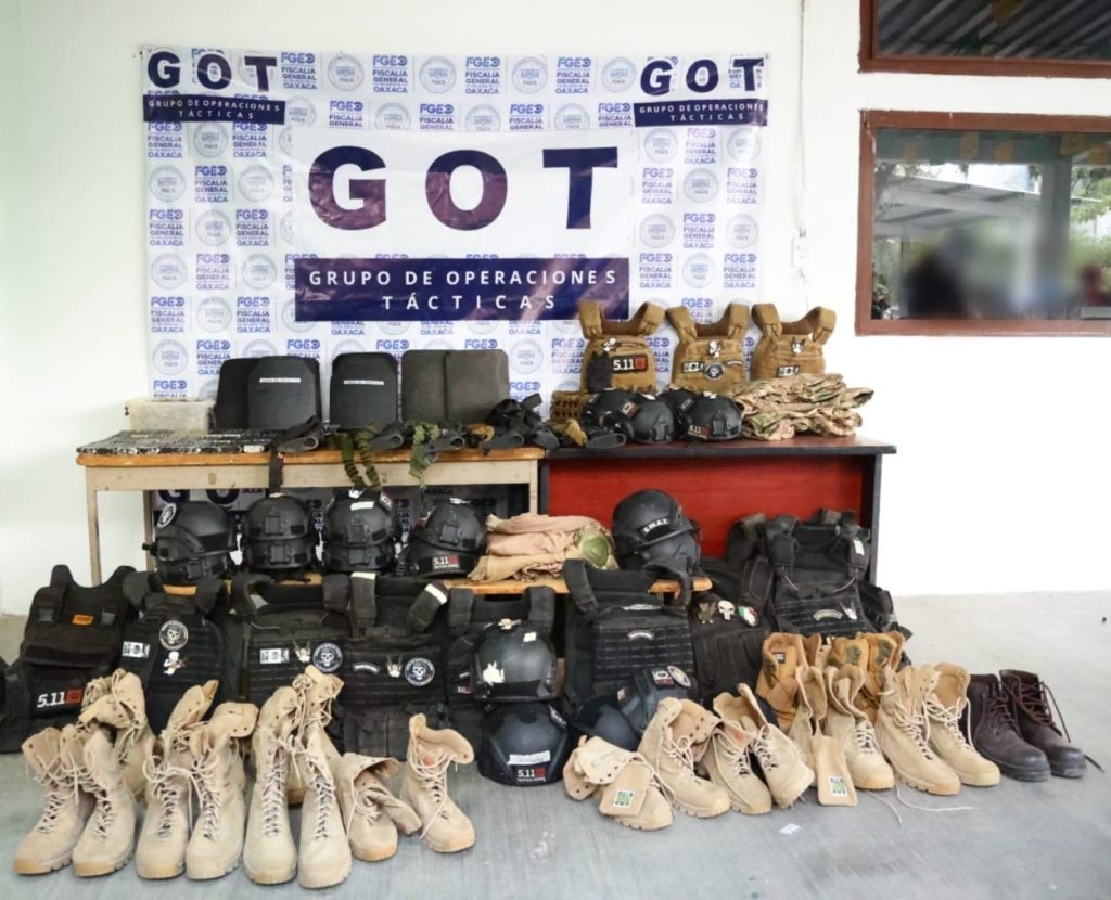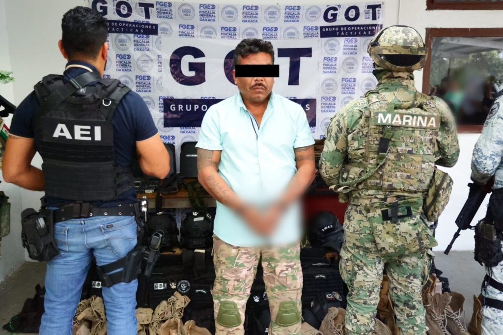 Oaxaca de Juárez, Oax. 02 de diciembre de 2025.- La Fiscalía General del Estado de Oaxaca (FGEO), junto con la Secretaría de Marina (SEMAR) realizaron operativos coordinados en el Istmo de Tehuantepec con los que se logró el aseguramiento de diversas armas de fuego así como equipo táctico localizadas en un rancho que era centro de operación de un grupo criminal, además de la detención de una persona, identificada como el principal proveedor de armamento del grupo delictivo de “Los Cromos”.