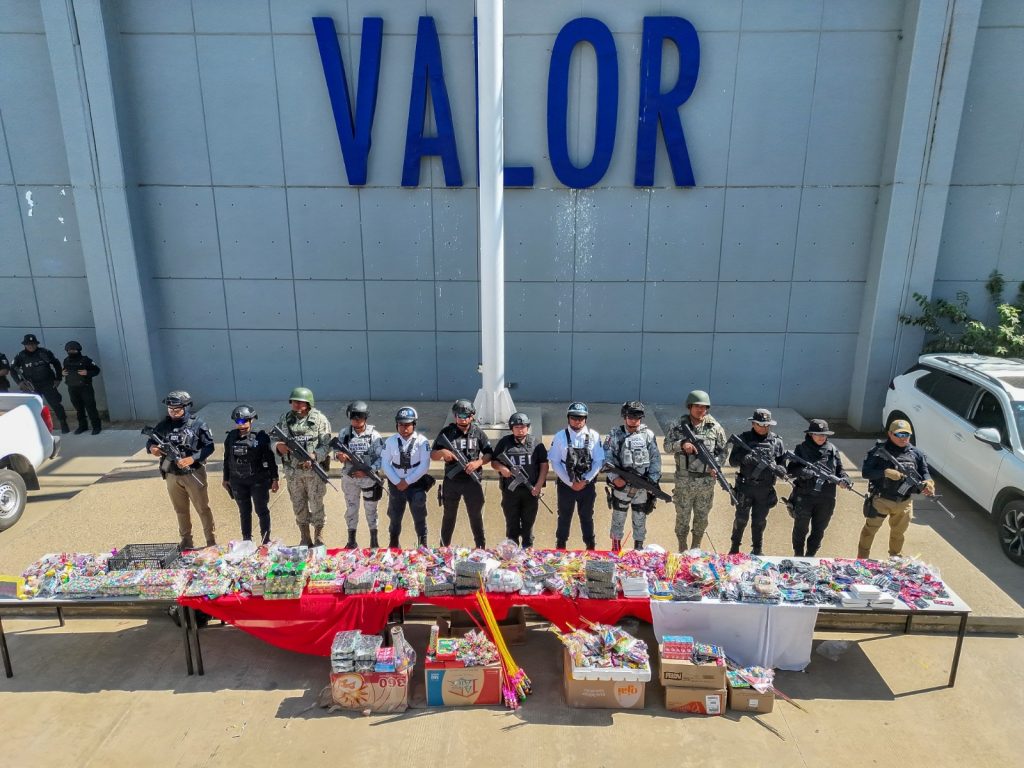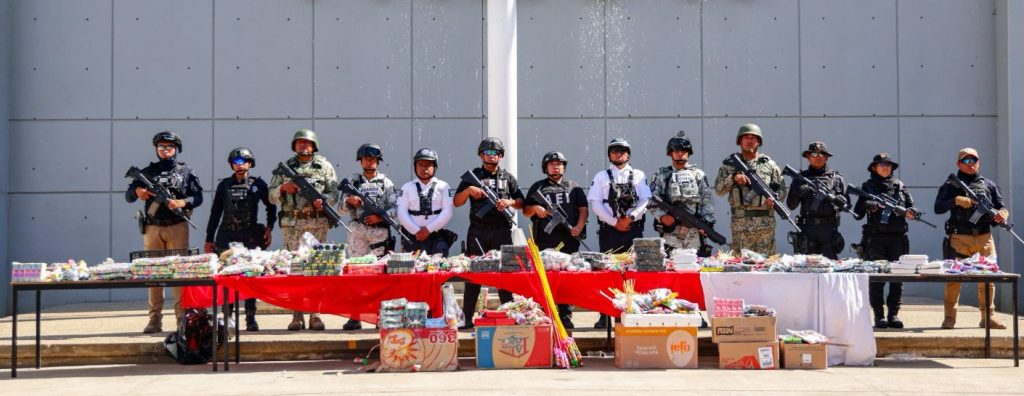 En esta primera etapa de la estrategia de combate a la venta de pirotecnia, se desmontaron puestos con venta ilegal de productos de pirotecnia, los cuales fueron asegurados y quedaron bajo resguardo de las autoridades estatales y federales.