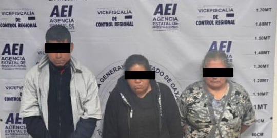 Como resultado de la primera intervención, que se llevó a cabo en un inmueble ubicado sobre el camino de terracería que comunica de Ixtlán de Juárez al mirador Cuachirindoo, detuvieron a tres personas, dos mujeres identificadas como E.O.V. (40 años) y C.O.V. (63 años), así como de un hombre identificado como A.M.M. (24 años).