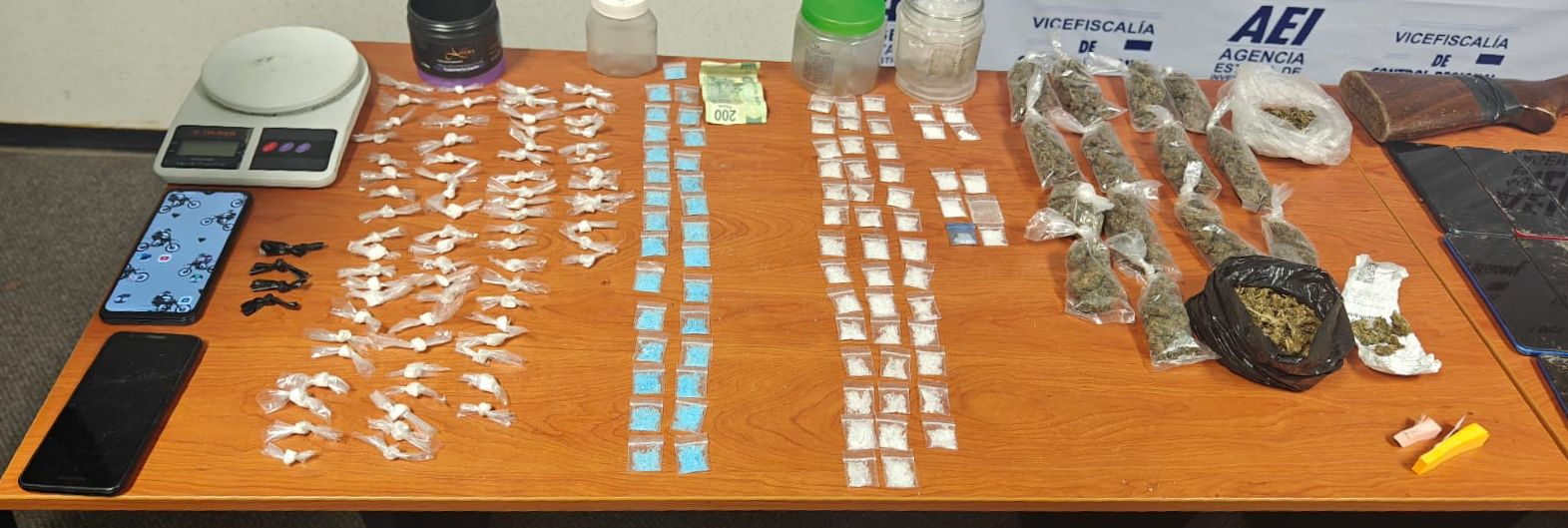 En este sitio detuvieron a dos personas, un hombre identificado como A.G.A.S. (23 años) y A.M.P.C. (31 años), además que se hizo el aseguramiento de diferentes dosis de drogas,