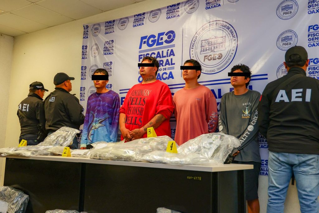 Oaxaca de Juárez a 12 de febrero de 2026.- La Fiscalía General del Estado de Oaxaca (FGEO) realizó el aseguramiento de más de 300 dosis de droga, además de la detención de cuatro hombres que presumiblemente pertenecerían a la principal célula delictiva dedicada al narcomenudeo en San José del Pacífico, perteneciente al municipio de San Mateo Río Hondo, en la Sierra Sur, acciones que son el resultado de trabajos de inteligencia criminal y coordinación interinstitucional.