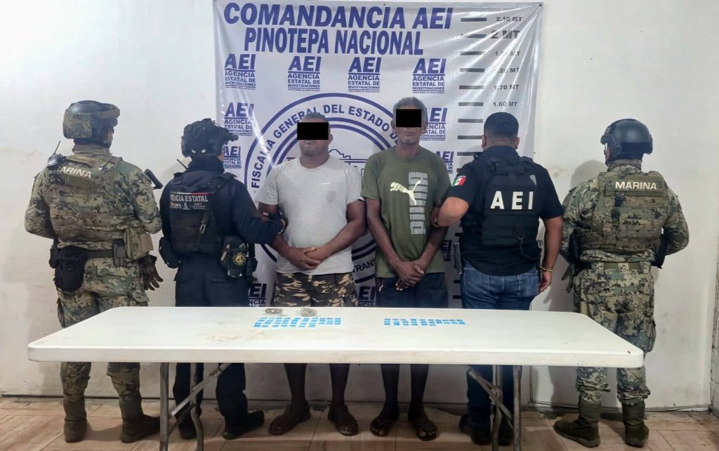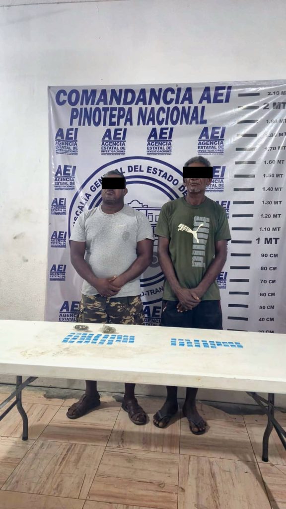 Oaxaca de Juárez, Oax., 18 de marzo de 2026.- La Fiscalía General del Estado de Oaxaca (FGEO) en coordinación con fuerzas de seguridad federal y estatal, realizó la detención de dos personas del sexo masculino identificados como A.S.M., y P.C.R., alias “Pantaleón”, por delitos contra la salud, quienes estarían relacionados con una célula delictiva dedicada a la venta de drogas, que opera en la localidad de El Ciruelo, en Santiago Pinotepa Nacional.