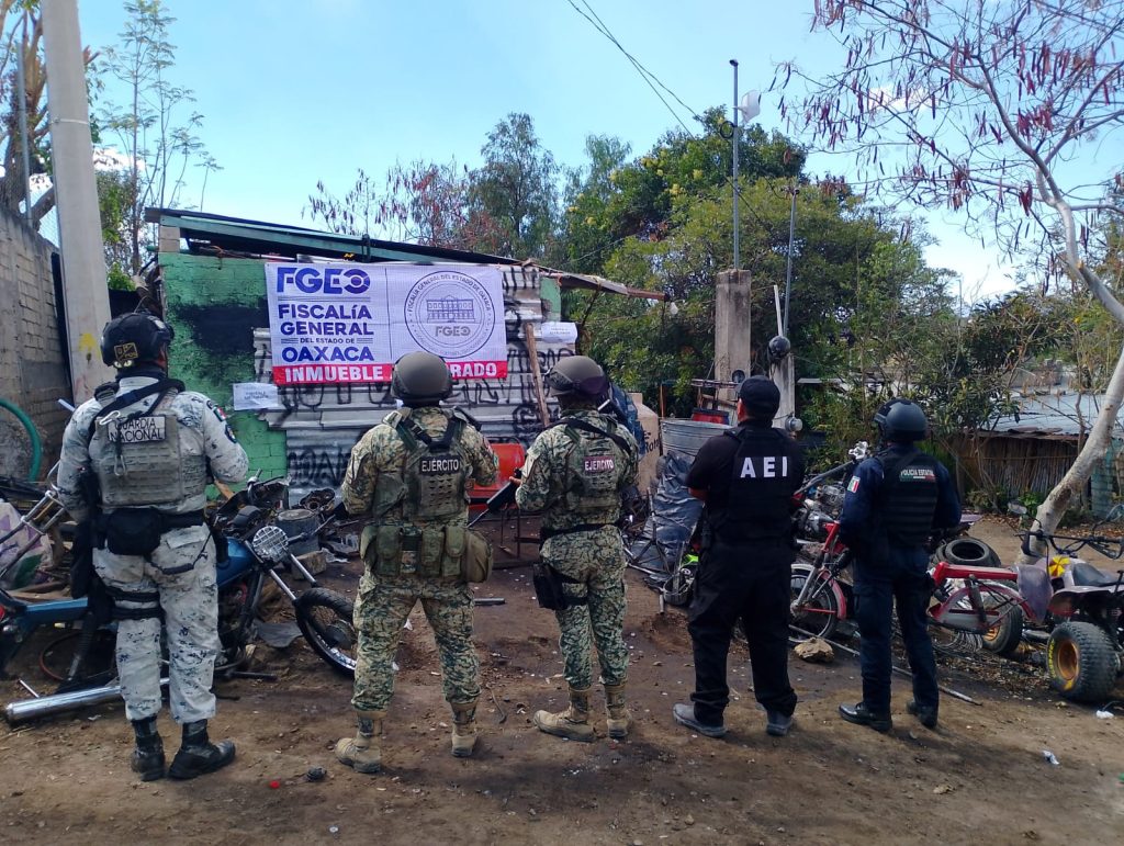 El operativo fue coordinado por la FGEO a través de la Vicefiscalía General de Control Regional, con la participación de elementos de la Agencia Estatal de Investigaciones (AEI), en conjunto con efectivos de la Secretaría de la Defensa Nacional, Guardia Nacional y Policía Estatal, quienes llevaron a cabo la intervención en el inmueble ubicado en la calle Las Rosas, del municipio de Soledad Etla.
