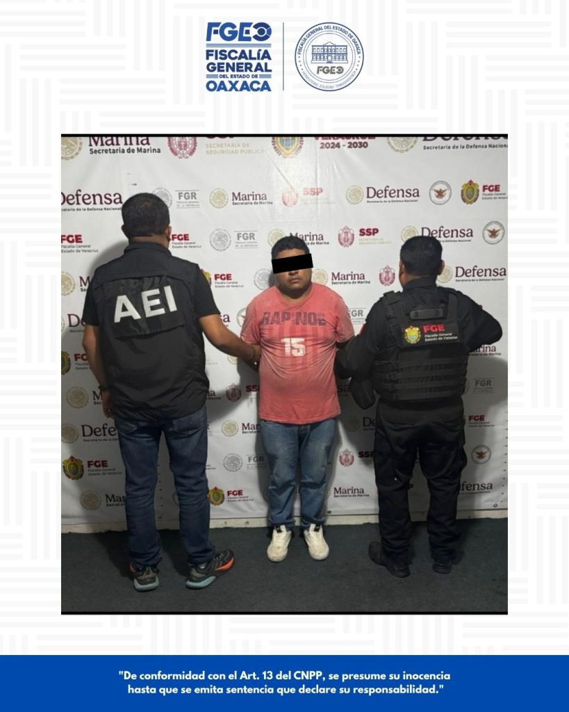 Oaxaca de Juárez, Oax., a 22 de abril de 2026.- La Fiscalía General del Estado de Oaxaca (FGEO) ejecutó una orden de aprehensión en contra de una persona del sexo masculino identificado como G.R.P. o J.G.R.P. por su probable responsabilidad en el delito de violación en agravio de una adolescente, hechos ocurridos en San Juan Bautista Tuxtepec.