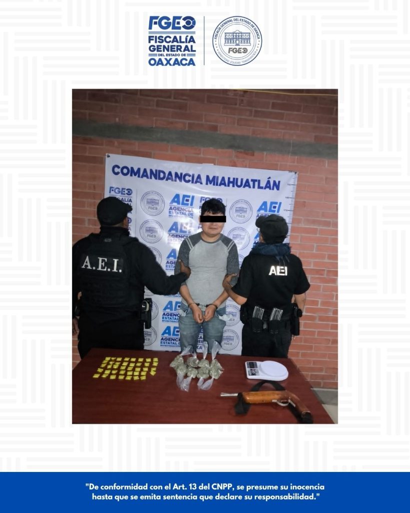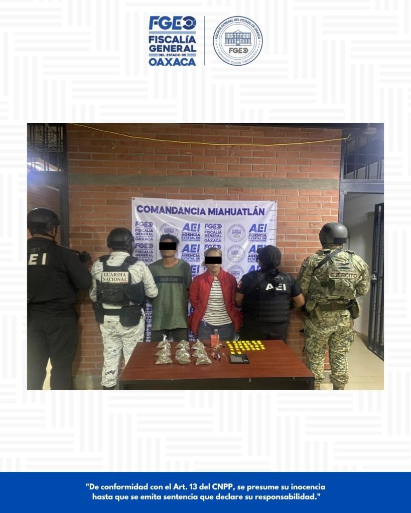 Oaxaca de Juárez a 30 de abril de 2026.- Derivado de trabajos de inteligencia criminal enfocados en el combate al narcomenudeo, la Fiscalía General del Estado de Oaxaca (FGEO) dio cumplimiento a tres órdenes de cateo ejecutadas de manera coordinada en la región de la Sierra Sur, acciones que derivaron en la detención de tres personas y el aseguramiento de diversas sustancias y objetos relacionados con posibles actividades ilícitas.